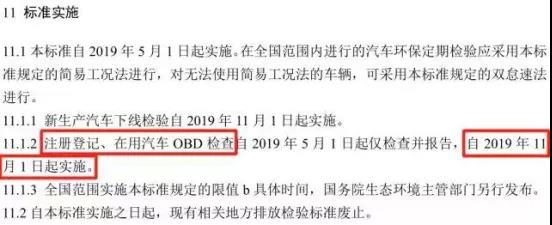 也就是說,從5月1日到10月31日,注冊登記、在用汽車OBD檢查僅檢查并報告問,不參與合格判定。但從2019年11月1號開始,相關檢測就要參與合格判定了。